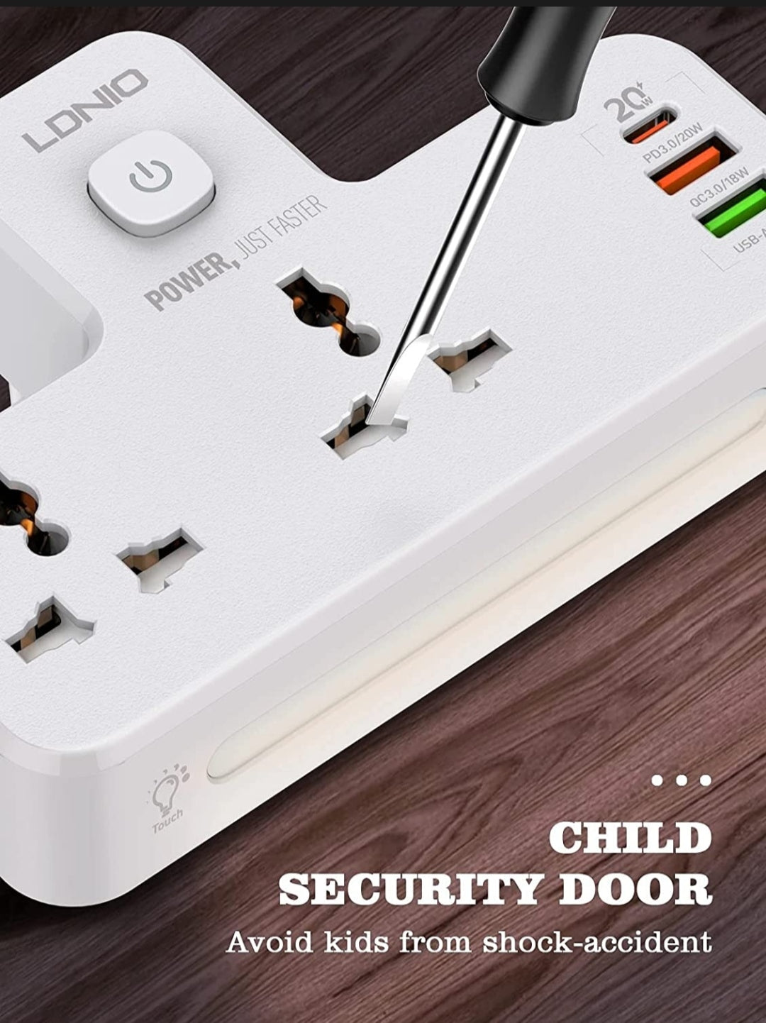 LDNIO SC2311 20W 3-Port USB Charger Extension Power Strip with 1 * 20W USB-C PD Power Delivery / 1 * 18W USB QC3.0/1 * USB-A Wall Charger Adapter Fast Charger for iPhone/Samsung/OnePlus/Mi/Oppo/Vivo