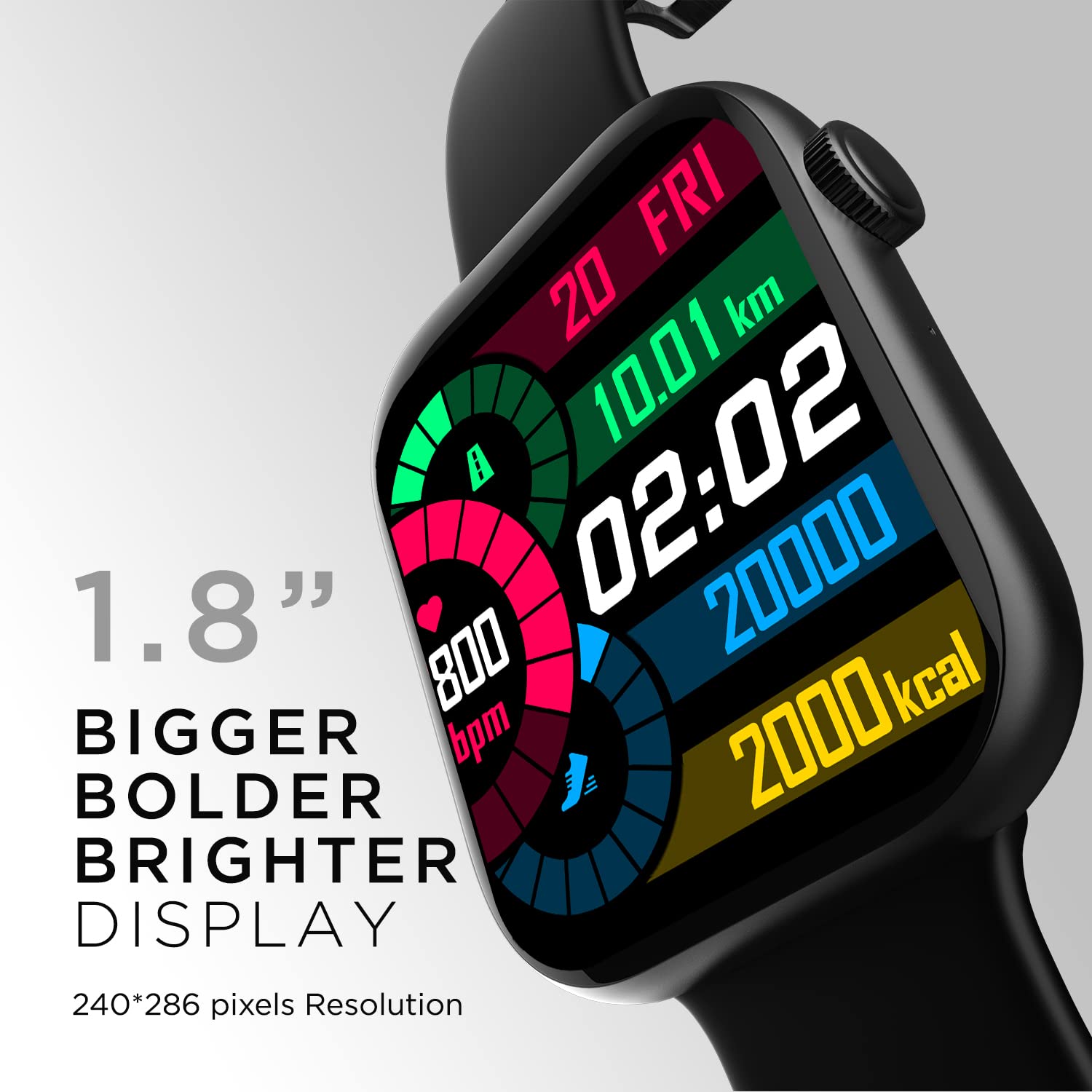 - 1.8 Inch HD Display - This smartwatch features a 1.8" TFT LCD full touch display with 2D high hardness glass for super protection and 240*286 pixels high resolution Ultra Fast Charge Technology with rotating buttons for smooth usage. - Charge the watch for 60 minutes for just 3 days of excellent battery life