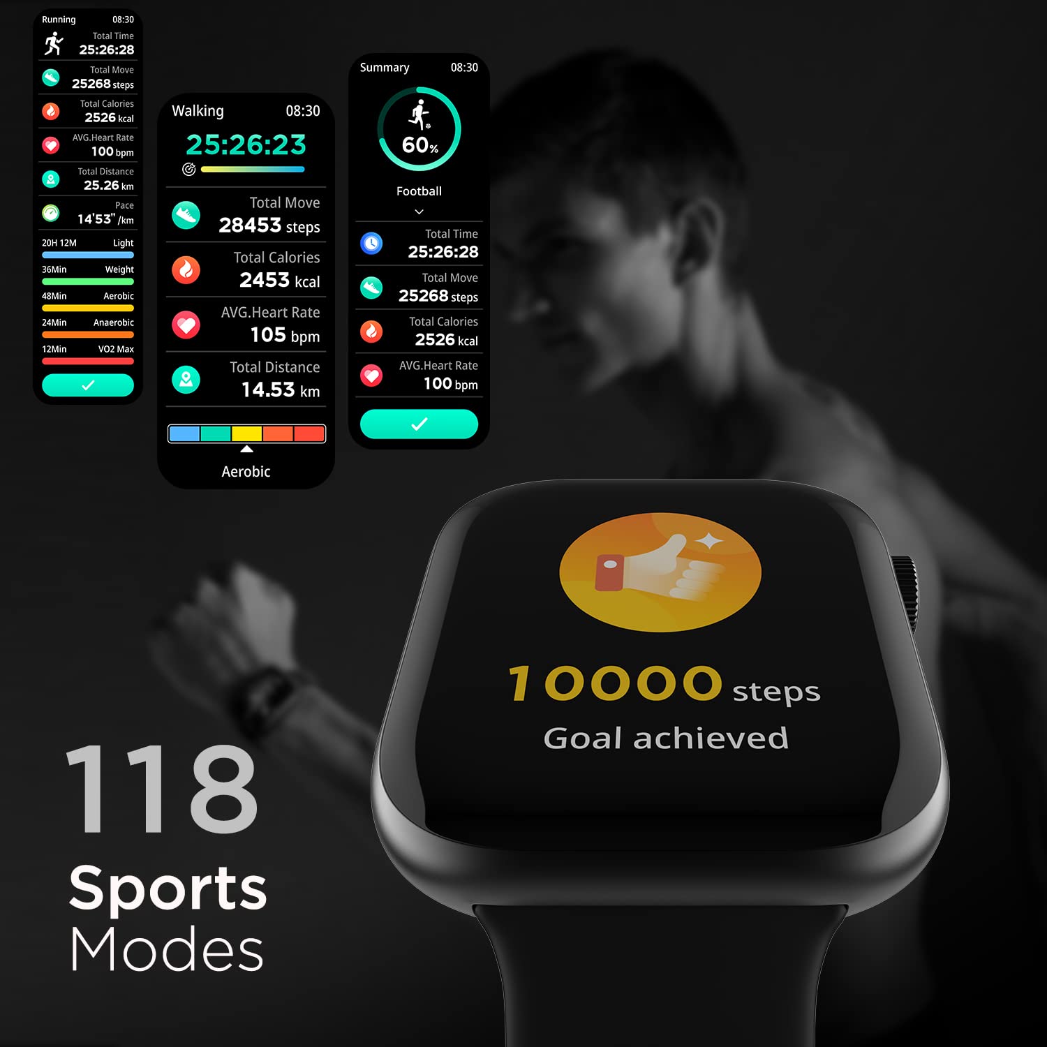 - 118 Sports Modes - Be your own coach while tracking 118 sports modes with professional analysis. Real Time Health Tracking - With an advanced intelligent algorithm combined with optical heart rate sensor to monitor your heart rate throughout the day even during exercise. Track your blood oxygen (SpO2) levels and indicate a healthy life