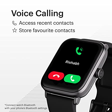 - Voice calling: Call the shots from anywhere via Bluetooth – answer calls, dial, store favourite contacts and dial from the recent history, right from your wrist.