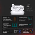 - 3-MIC ENC Call Noise Reduction: To keep your calls sounding smooth, the 3-MIC design trims down wind noise caused by air friction. It sharpens voice-pickup & cuts down surrounding noise for crystal clear speech. Supported Audio Format(s): SBC, AAC