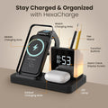 - Digital Alarm Clock : The Hexacharge is more than just a wireless charger; it's a wireless charging dock with a digital alarm clock. Now you can set your desired wake-up time and enjoy a peaceful and punctual start to your day