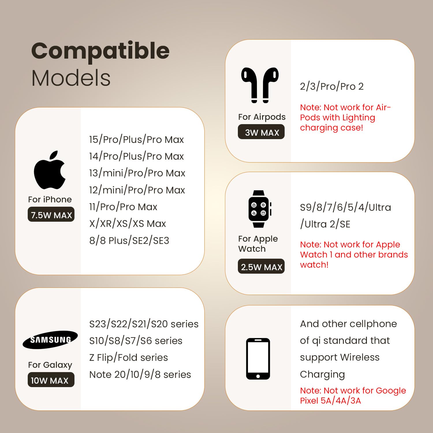 - Power Your Phone Wirelessly : Enjoy the convenience of wireless charging for your phone with the Wireless charger for iPhone . Simply place your compatible phone on the charging pad and let it power up.