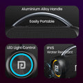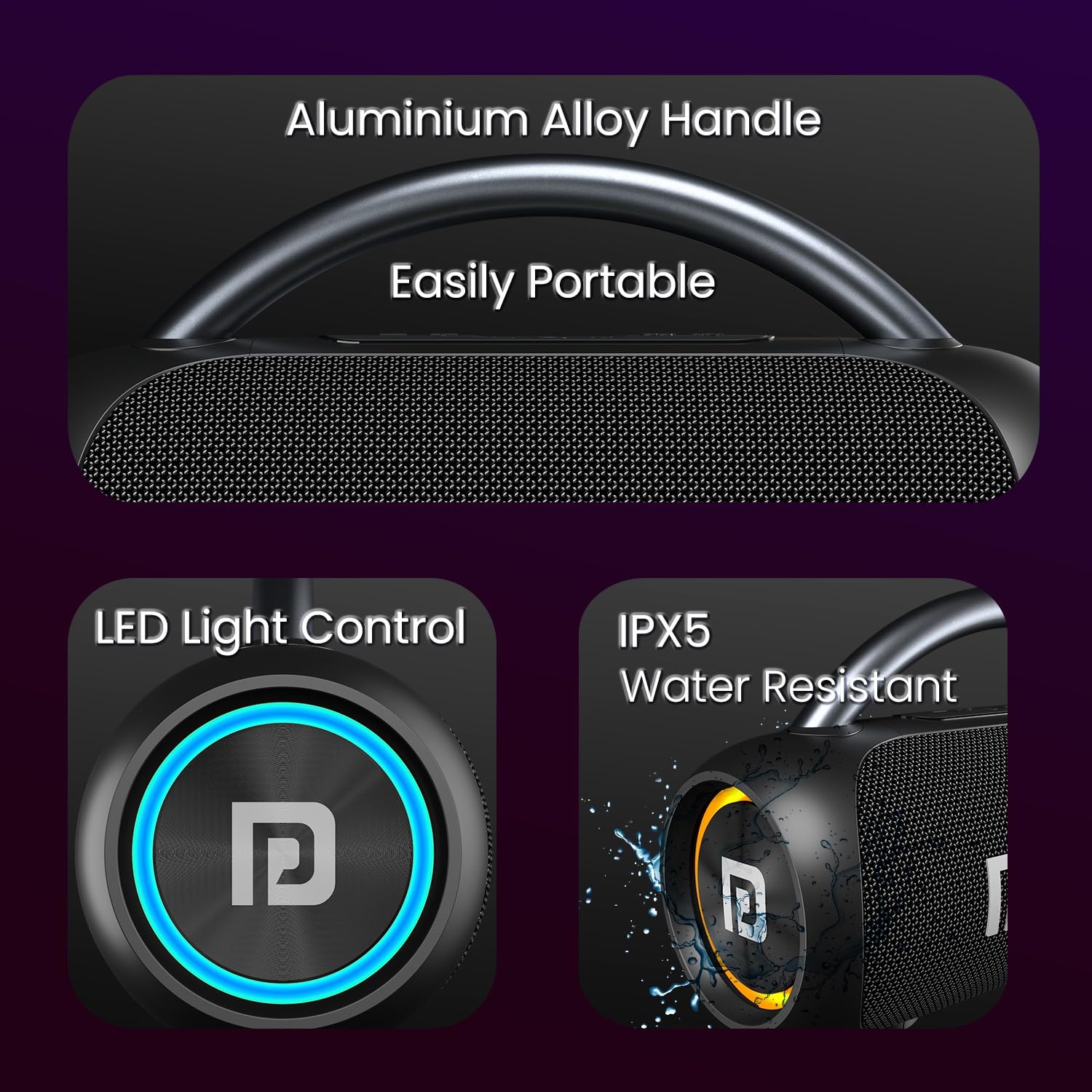 - ALUMINIUM HANDLE & IPX5: With a firm aluminium alloy handle, this portable speaker can be carried anywhere. Its IPX5 water resistance makes it splash, rain, and spray-resistant, perfect for outdoor activities like camping, beach outings, and more.
