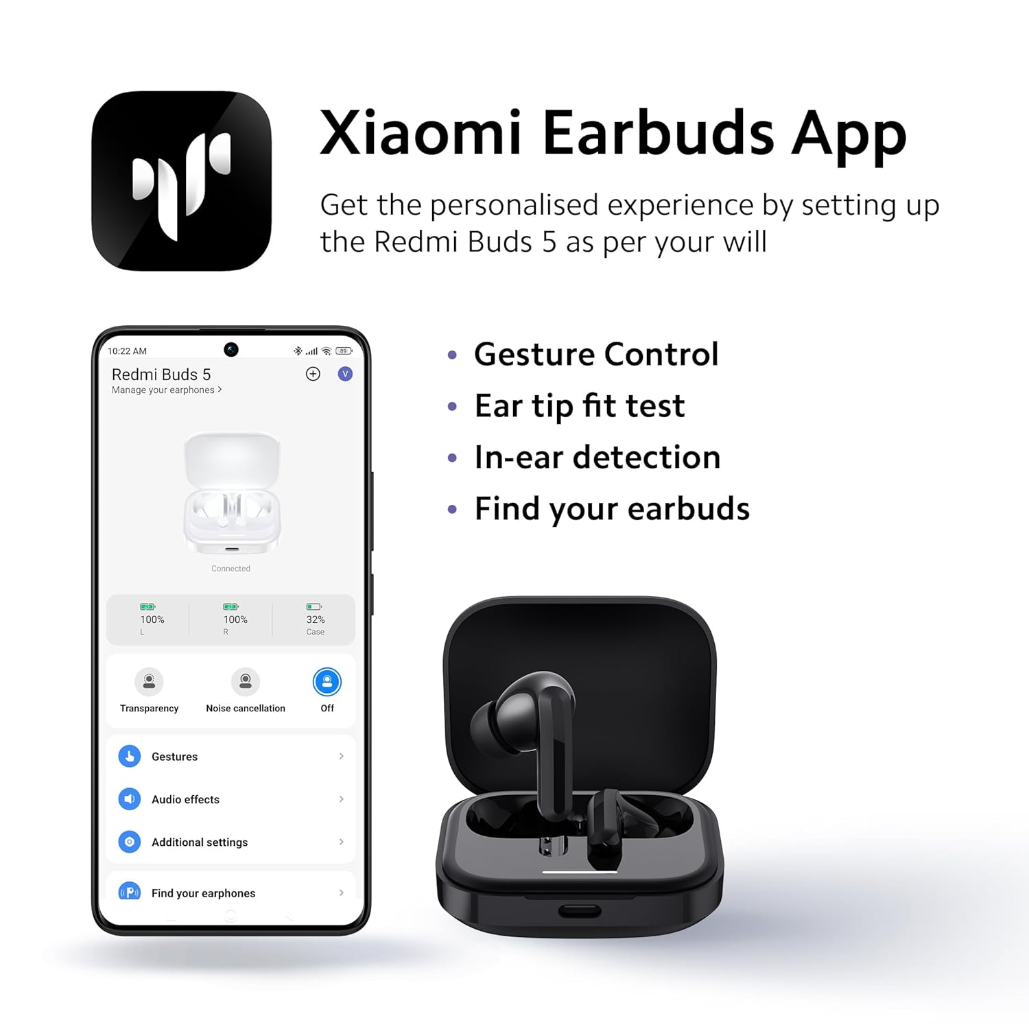 Redmi Buds 5 Truly Wireless Bluetooth in Ear Ear Buds (TWS) with Upto 46Db Hybrid Noise Cancellation,Dual-Mic Ai Call Enhancement,10Mins for 4Hours Fast Charging with Upto 38Hrs Playback