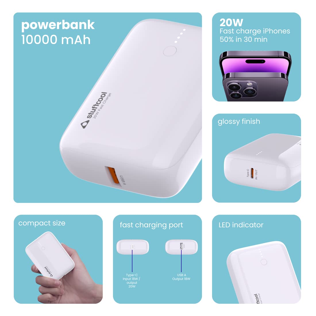 Stuffcool 10000mAh Palm Smallest QC PD 20W Type C Super Premium Mini Powerbank, Charges Any iPhone 50% in 30 mins