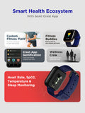 4.29 CM HD Display Heart Rate & Blood Oxygen Level Monitor Wellness Crew & Fitness Buddies Custom Run Plans Cloud & Custom Based Watch Faces Call, Text & Social Media Notifications.